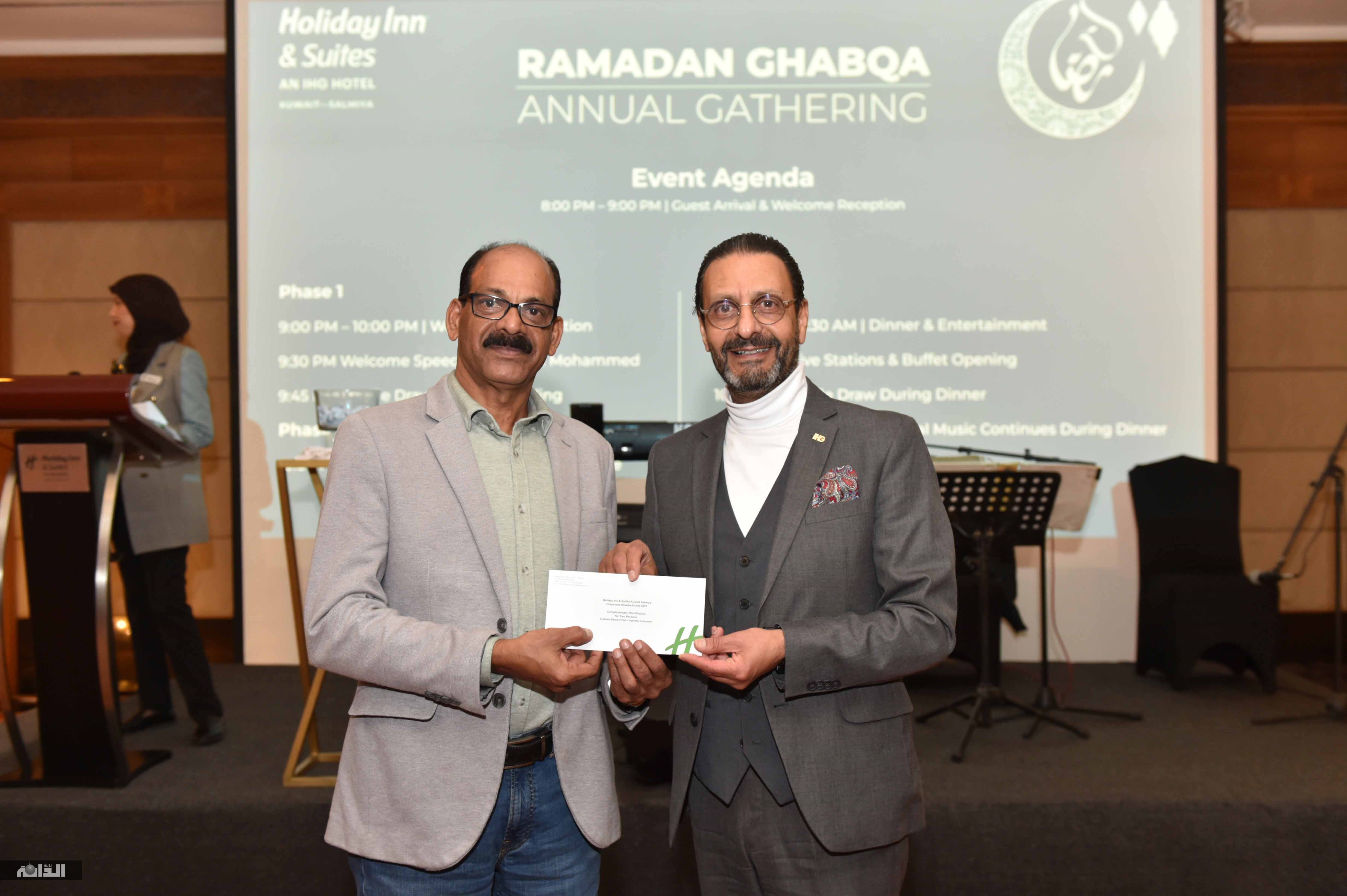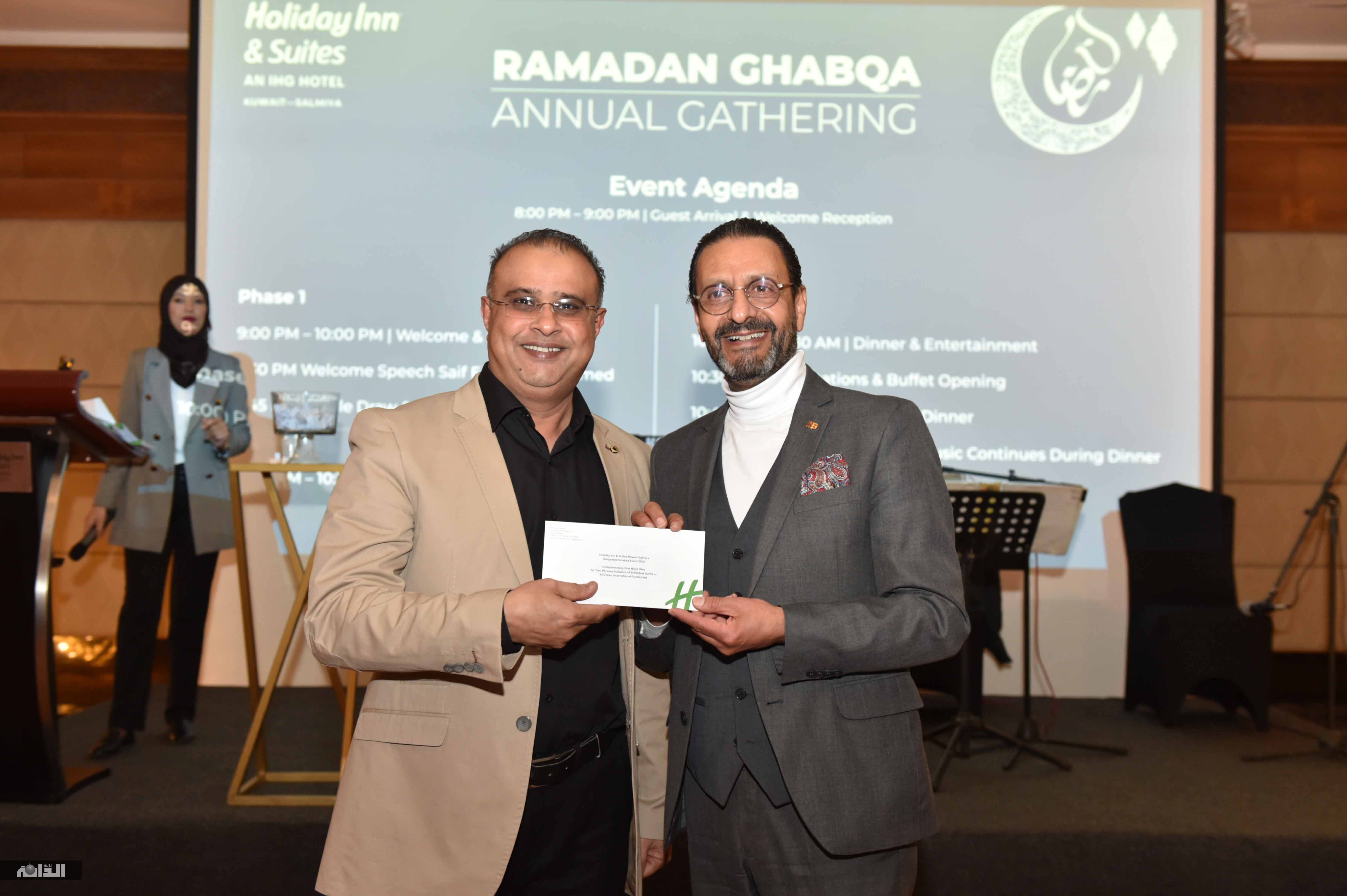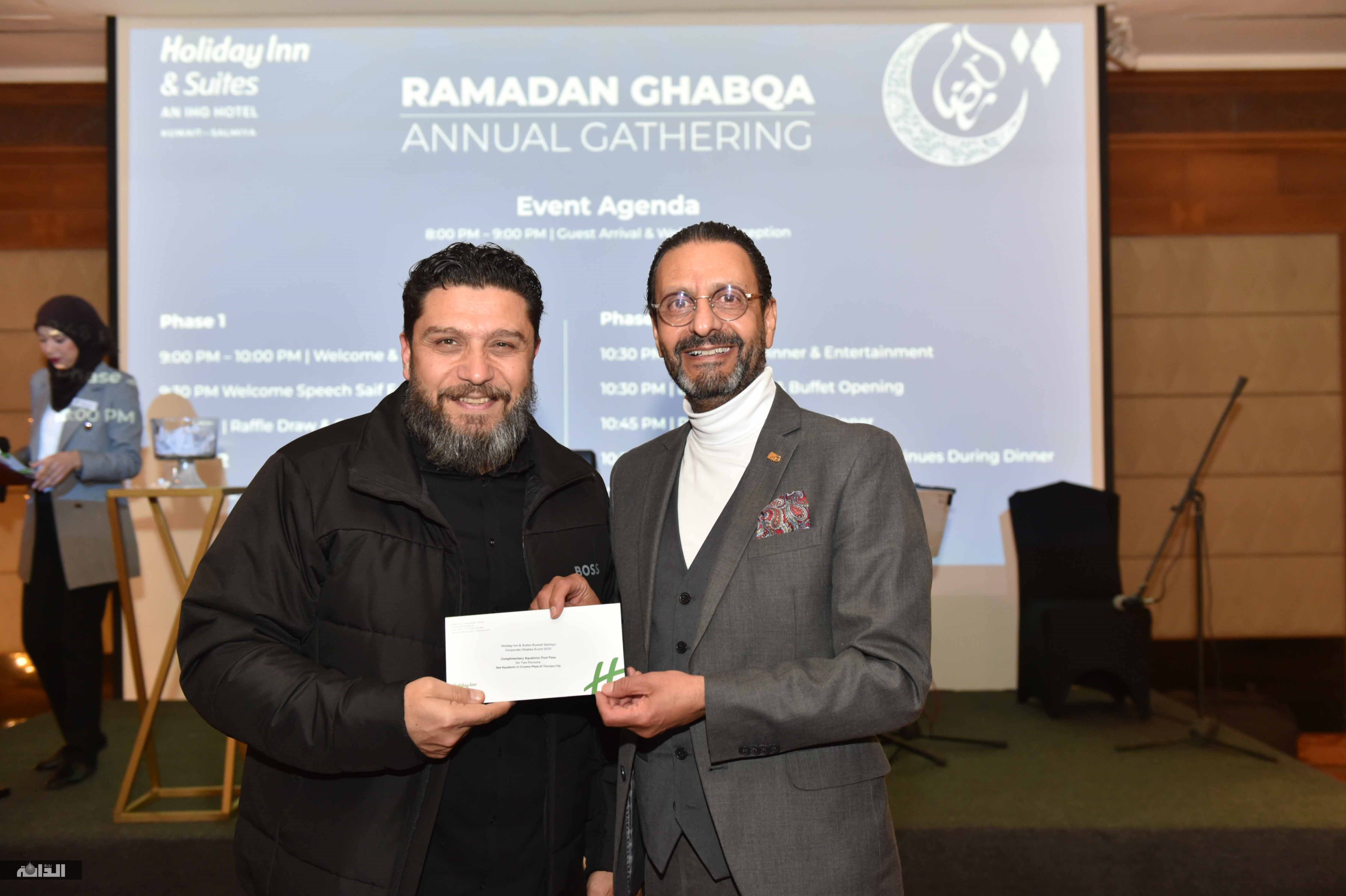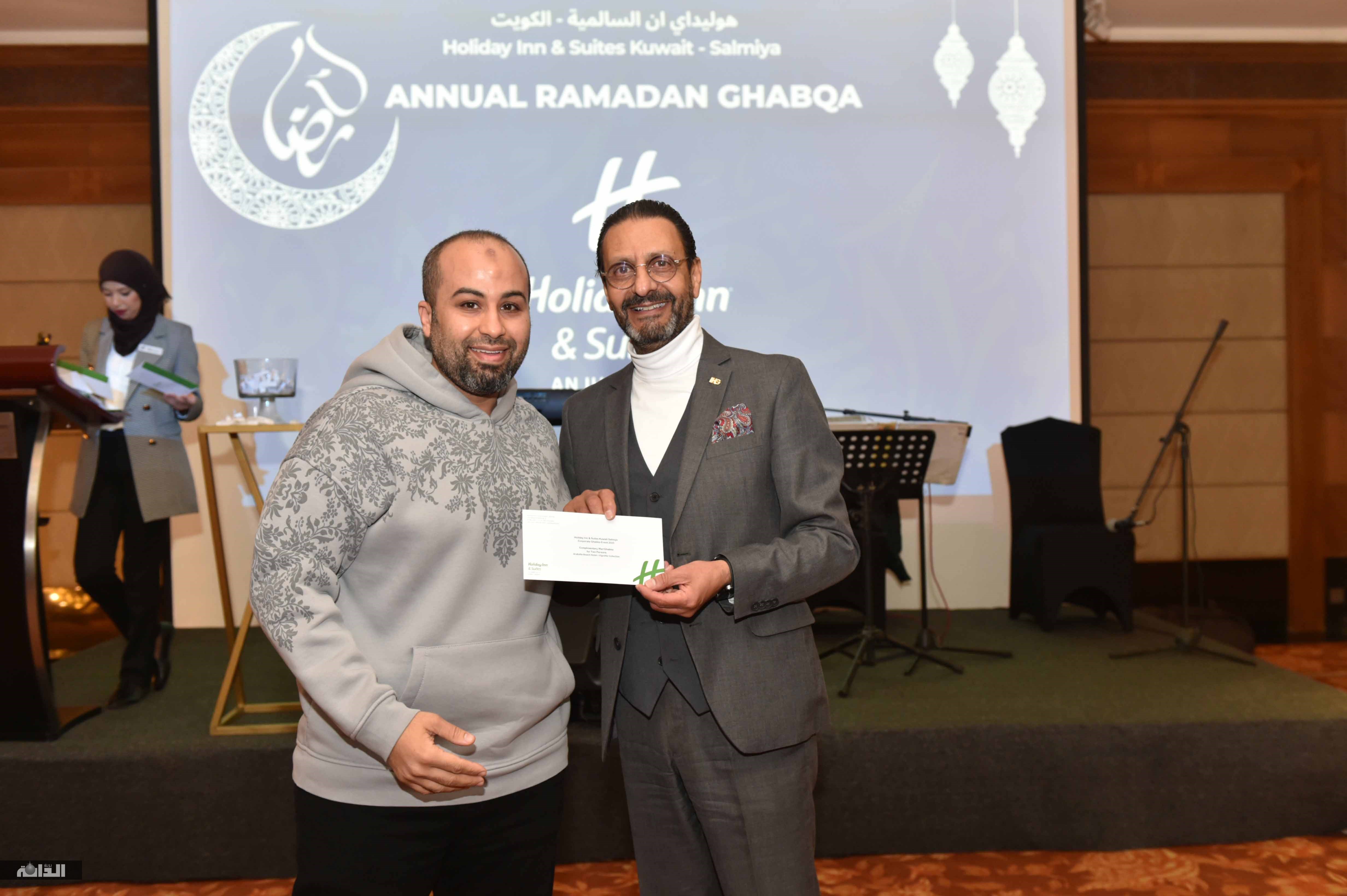 اقامت فندق هوليداي إن السامية غبقة رمضانية حضرها عدد من شركاء الفندق والاعلاميين وشخصيات عامة ،حيث تخلل الحفل عزف موسيقي وعرضة شامية فضلا عن فقرة سحب الجوائز وبهذه المناسبة رحب المدير العام للفندق سيف الدين محمد بالضيوف مهنئا اياهم بشهر رمضان الكريم كما تقدم بالتهنئة للكويت اميرا وحكومة وشعبا بمناسبة حلول الشهر المبارك متمنيا للكويت المزيد من الرخاء والتقدم وتحدث سيف الدين محمد عما يقدمه الفندق من خدمات وكل ما هو جديد لمواكبة الحداثة منوها الى الدور الذي يلعبه مجال الفندقة في عملية التنمية بالكويت كما أشار إلى اهمية اقامة الغبقات السنوية الرمضانية كمناسبات اجتماعية يحرص عليها المجتمع الكويتي ولفت الى ان رمضان في الكويت يتميز بالمناسبات الاجتماعية والتي يتم توارثها من جيل لآخر، حتى أصبحت جزءً من الثقافة الكويتية، مشيدا بالعادات والتقاليد الرمضانية الكويتية واختتم كلامه بتمنياته للحضور بقضاء أمتع الاوقات.