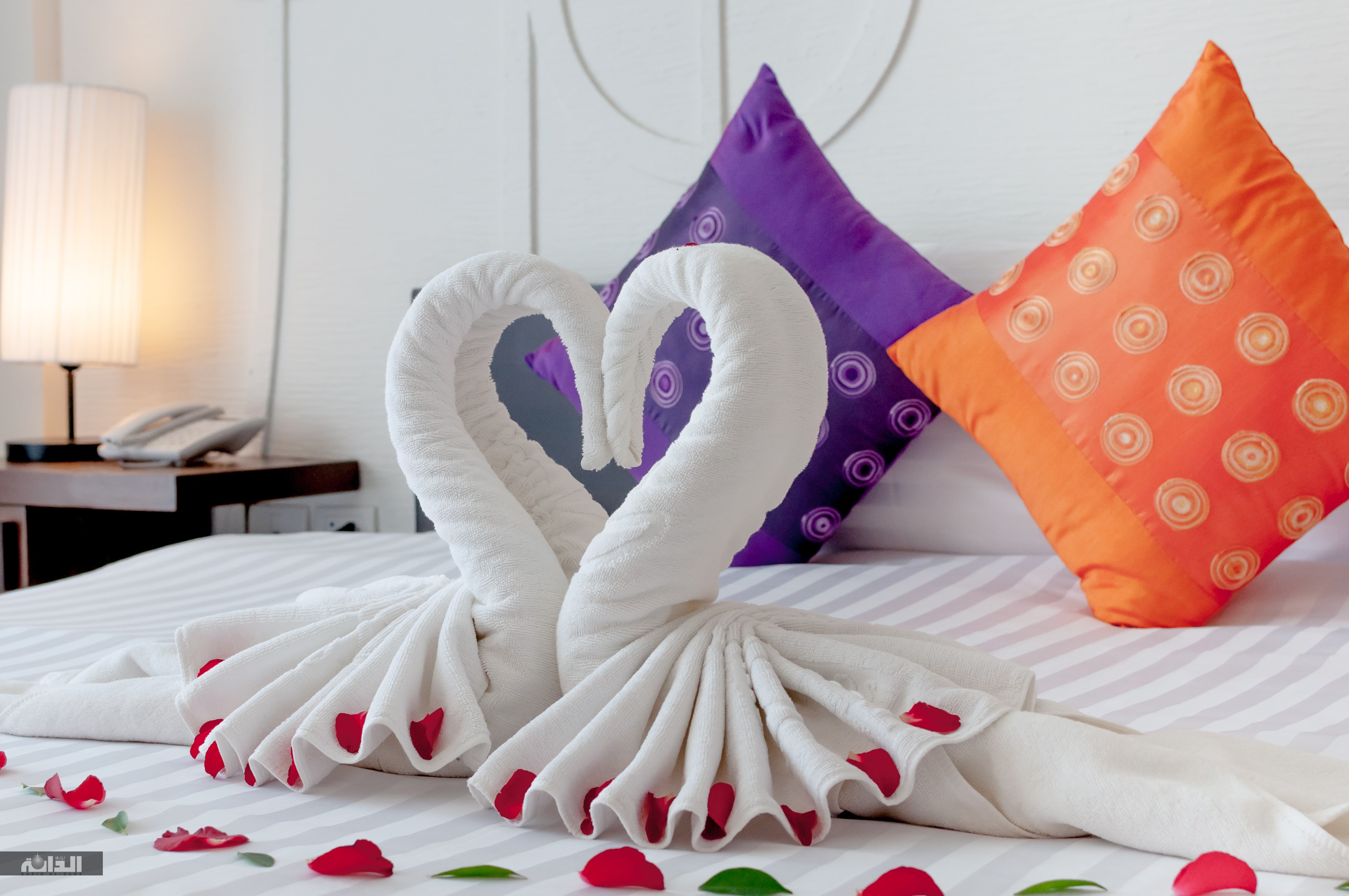 - في غرف النوم البيضاء يمكن اختيار المفارش والستائر البيضاء والتي تحمل رسومات أو تطريزات خفيفة تعطي حركة باللون.