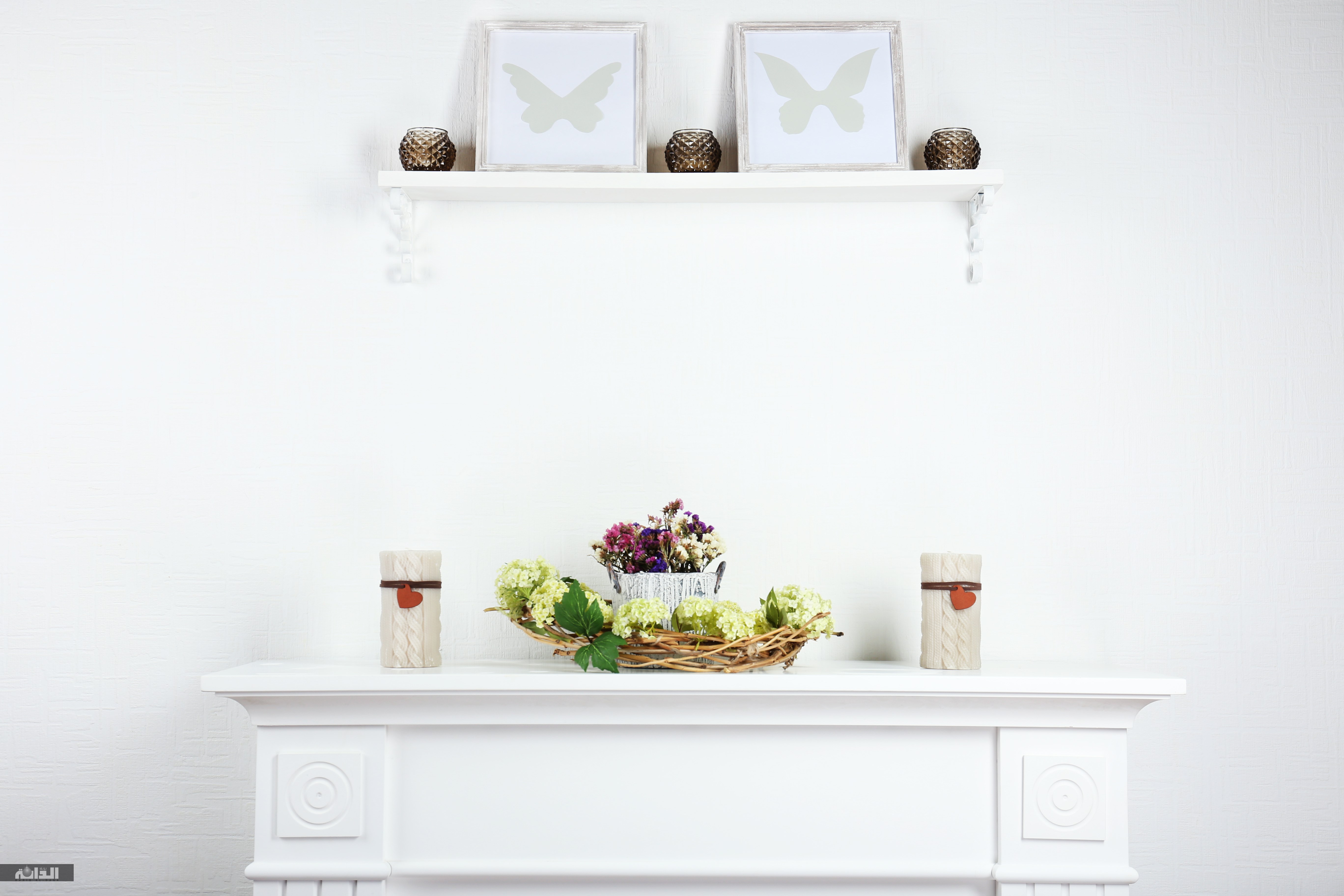 - فيما يخص إطارات الصور واللوحات يفضل أن يكون هناك تدرج في اللون مع مراعاة باقي الألوان المستخدمة والمنسجمة مع اللون الأبيض.