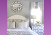 من الأجزاء التي يصعب تزيينها بقطع الديكور هي المساحة فوق السرير . ولكن إليك هذه الفكرة البسيطة . علقي مرآة دائرية على شكل شمس بحيث تكون محكمة التثبيت وسوف تفي بالغرض تماما .