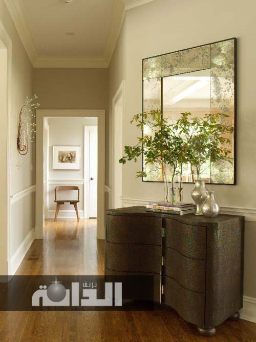 هذه الطريقة تعطي انطباعا بأن المساحة شاسعة . عندما تغطين الجدار وراء المنضدة بالمرآة سوف تكتشفين أنها خطوة ذكية ،لها نتيجة رائعة .
