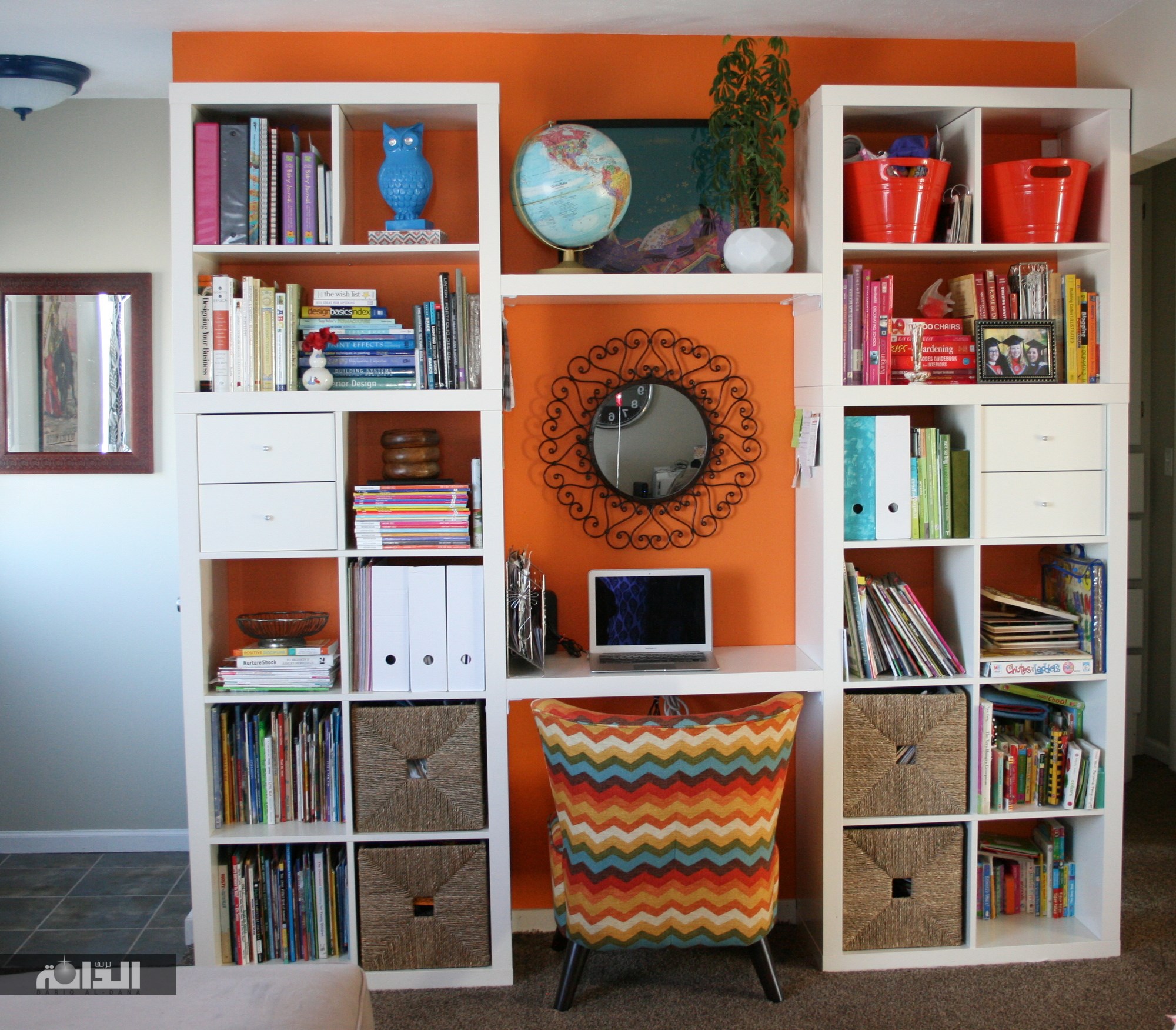 ضعي مرآة دائرية سميكة في منتصف أرفف المكتبة لتمنح الغرفة مزيدا من العمق . أو على الأقل ستكون بديلا مثاليا لجهاز التلفاز الذي يوضع عادة في هذا المكان .