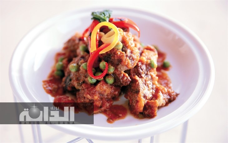 - يغطى لمدة 10 دقائق ثم يغرف اللحم ساخنا.