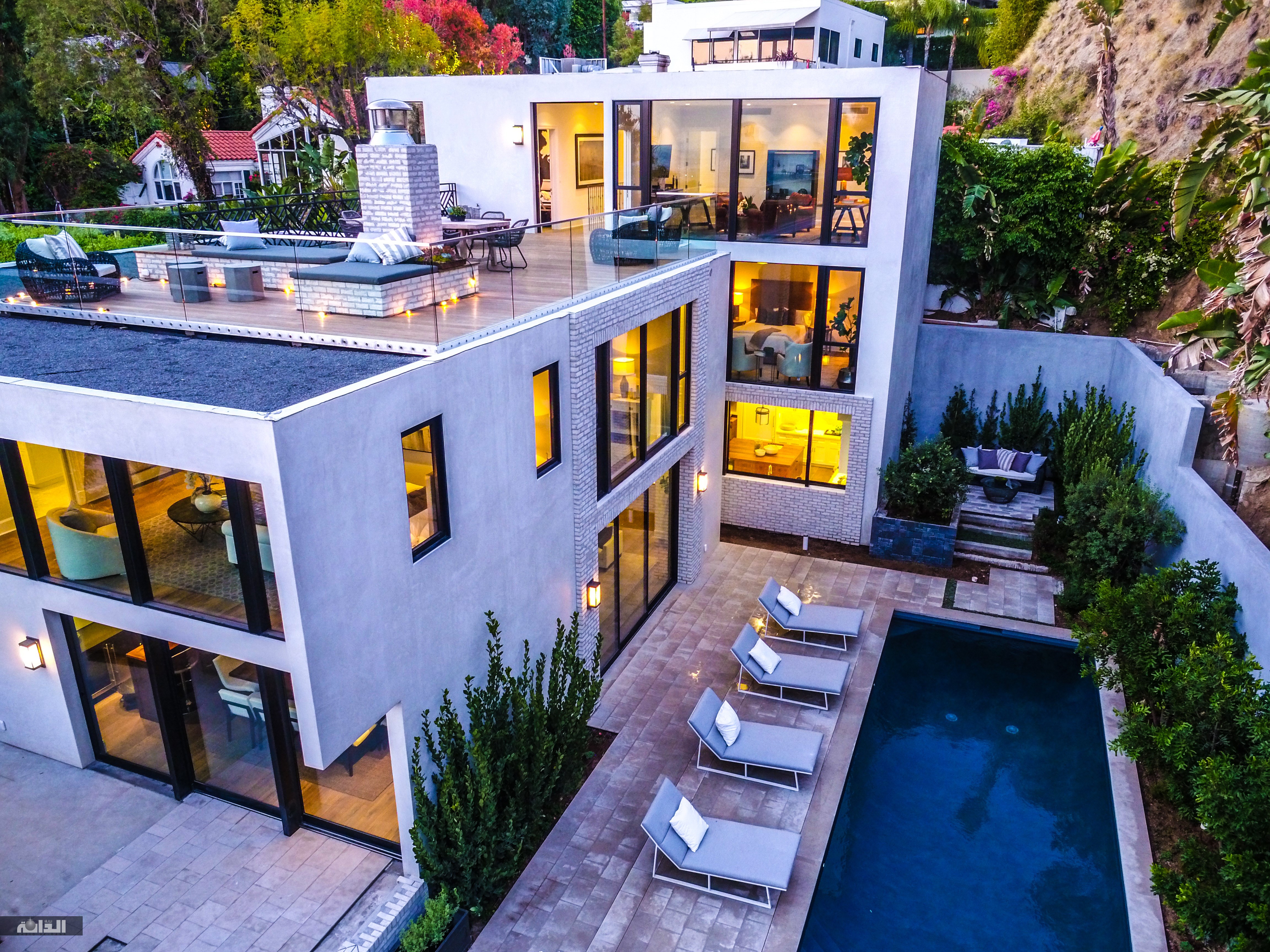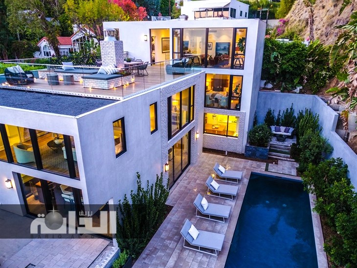 يضم المنزل 6 غرف نوم بنوافذ كبيرة ، إضافة إلى حوض سباحة وسطح شاسع ذي إطلالات ساحرة على المدينة .