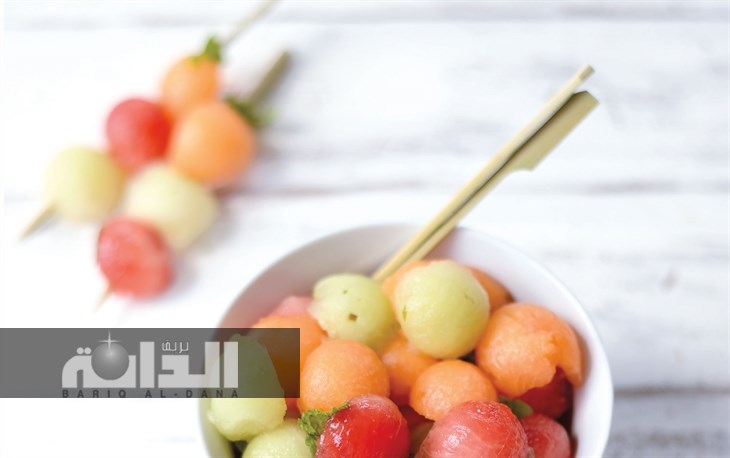 الفواكه على طريقة وضعها بأسياخ، جمالية التحضير من مطبخ بريق الدانة: