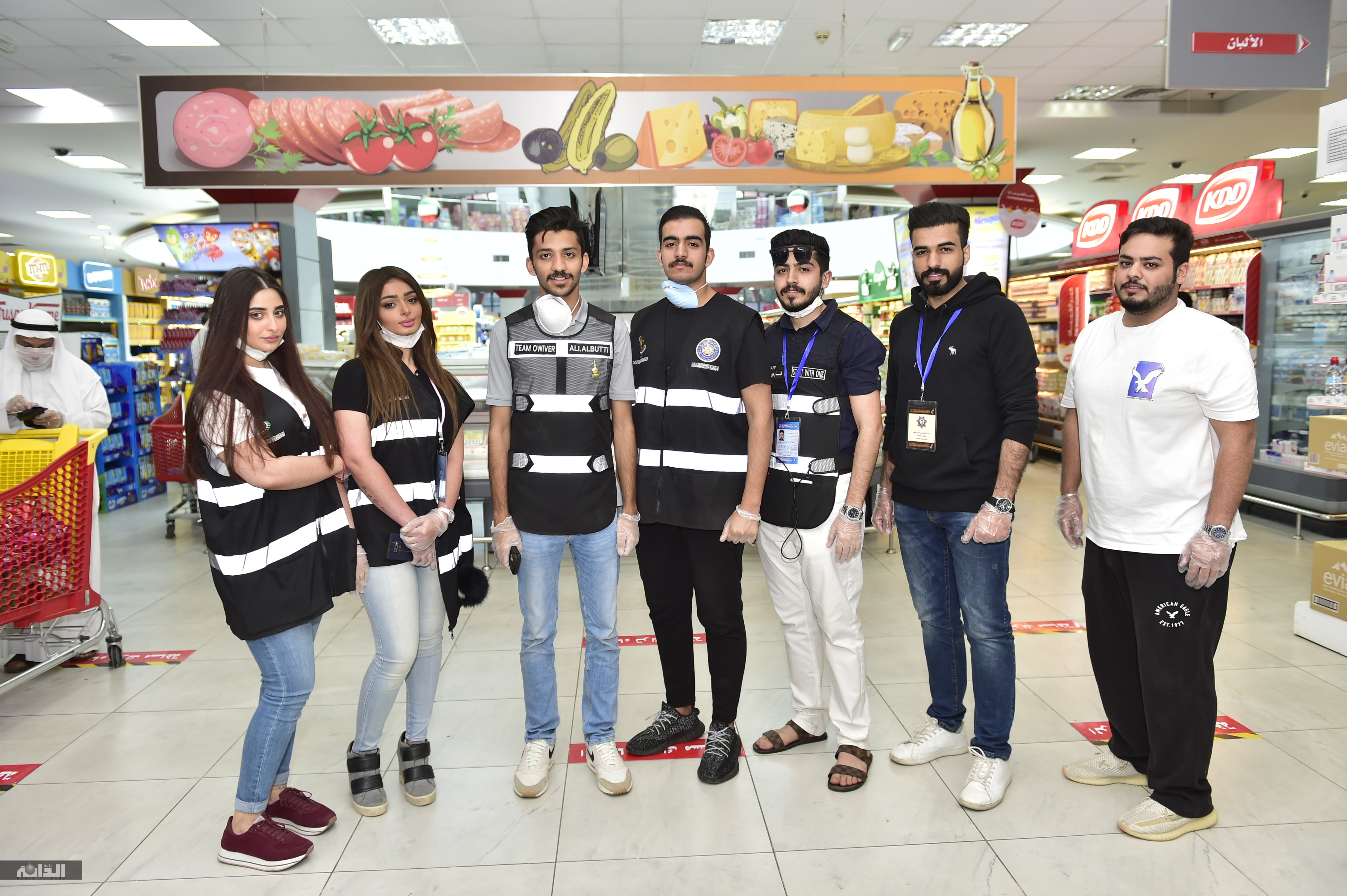 مشاري المشاري ..شاب كويتي أخذ له موقعاً خلف كاشير إحدى الجمعيات،رفض تصويره او التركيز عليه لأنه لا يمثل نفسه بل "جميعنا واحد"، بهذه الجملة بدأ حديثه قائلا: لسنا هنا من أجل "الشو" واثبات الوجود بل نحن هنا لأنها كويتنا وحبيبتنا ووطننا ، اليوم عندما قررت السلطات التخلي عن العمالة الآسيوية حفاظاً على صحة الجميع تسابق الجميع ما بين من يرتب الأغراض وآخر يدفع عربة الأكل وآخر يسلم القفازات ويعقمها وهناك من قامت بالتكييس وغيرها،نحن شباب كويتي جبلنا على ان نكون حاضرين دوما متى ما نادانا الوطن، لم يفرقنا شهادة علمية او اسم عائلة أو إنتماء قبيلة .