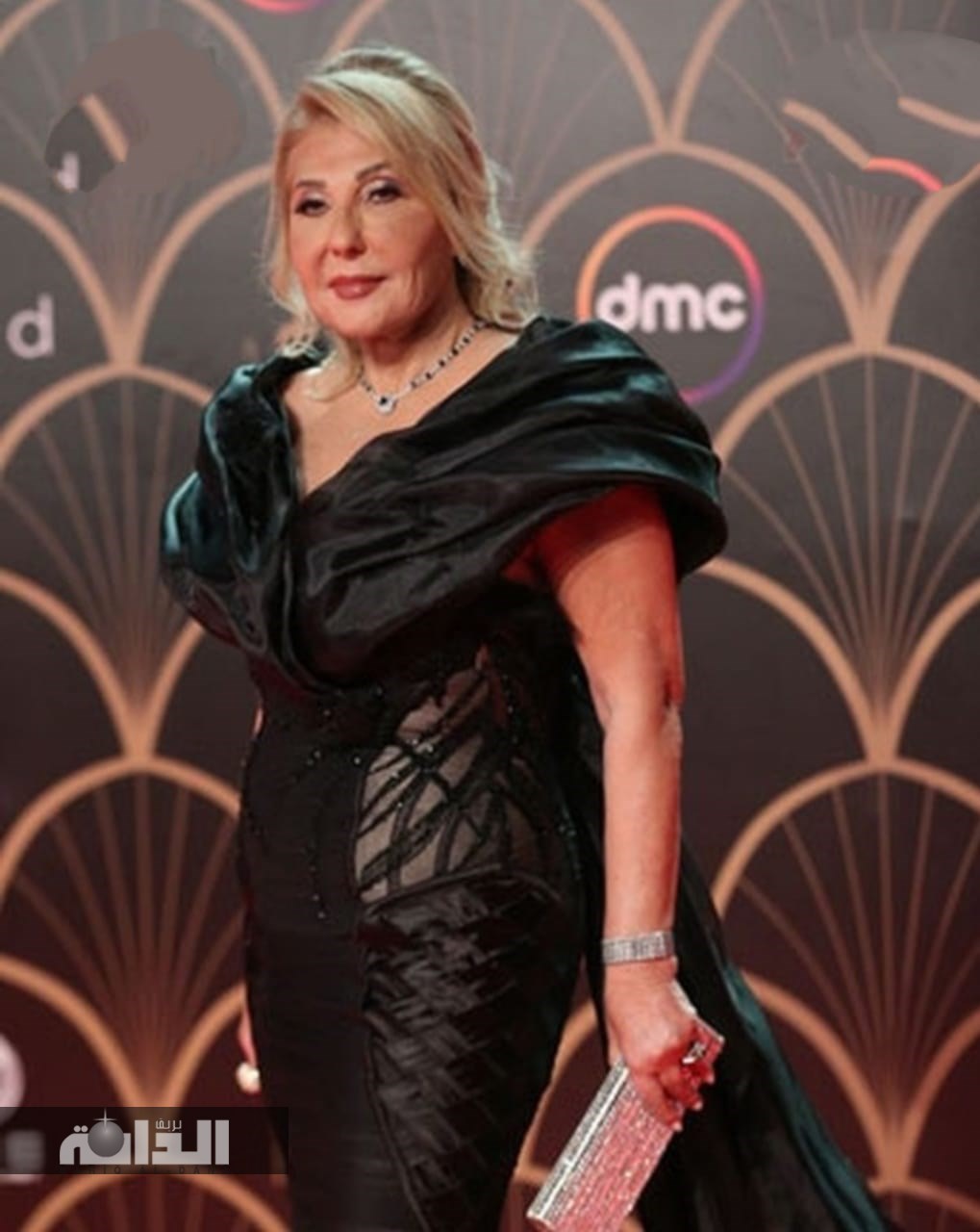 وظهرت الفنانة سلمي أبوضيف ببدلة جريئة باللون الأسود اللامع، تتميز بأنها مكشوفة عند منطقة الصدر، وبماكياج ناعم، واختارت أن تترك خصلات شعرها منسدلًا على كتفيها.