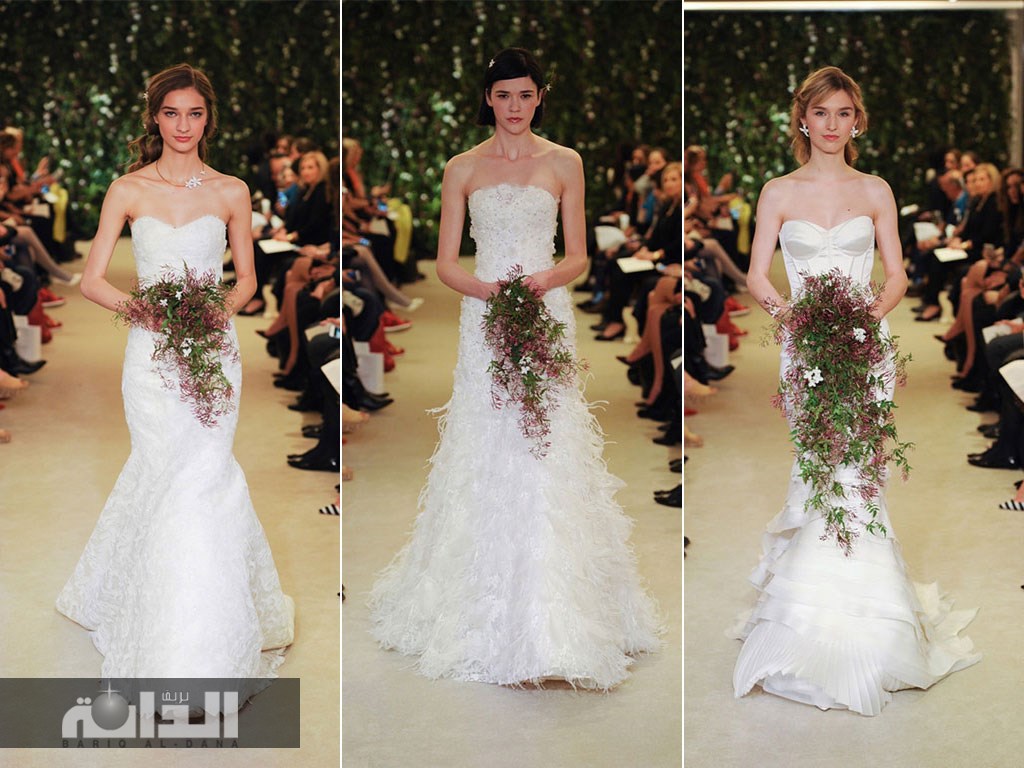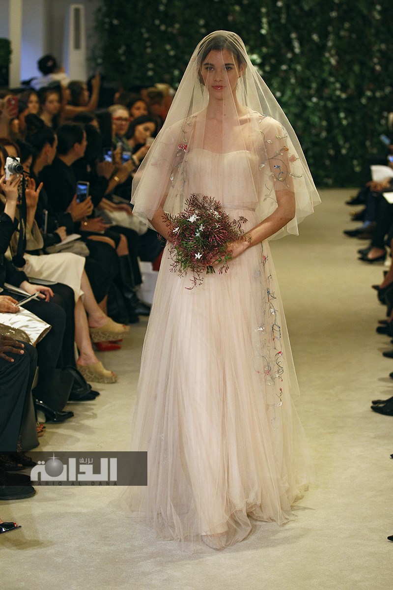 زهرة الياسمين كانت مصدر إلهام للمصممة كارولينا هيريرا حيث جسدت عشقها لتلك الورود في تشكيلة فساتين الزفاف لربيع 2016 . ومع بساطة وأناقة اللون الأبيض أخذتنا المجموعة نحو صورة ذهنية لحفل زفاف اسطوري ،حيث بدت العارضات أشبه بباقة من الزهور التي تتدفق جمالا، فيما هيمنت أقمشة التول المطرز والدانتيل المشجر والأورغنزا على التصاميم .